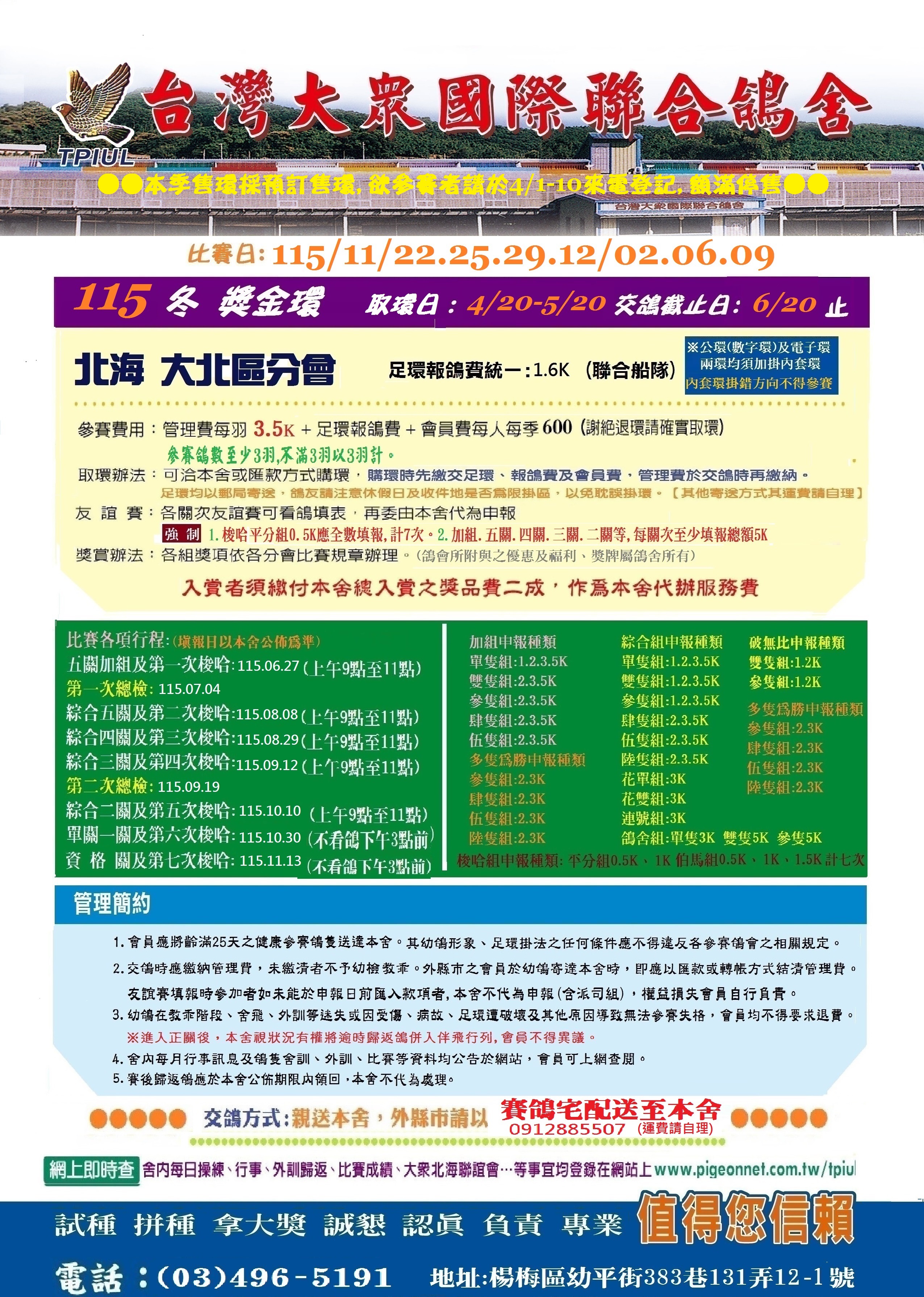 | 115春季售環114/08/15-09/20 交鴿截止日:114/10/15 | 2025-08-19 08:43 |